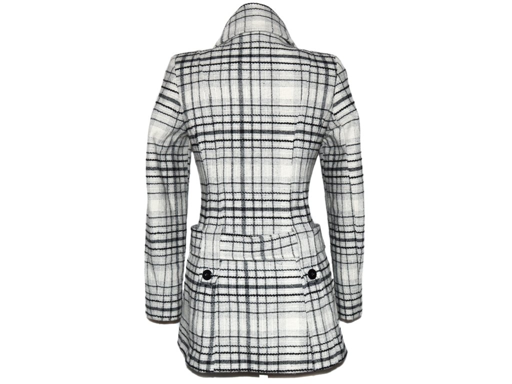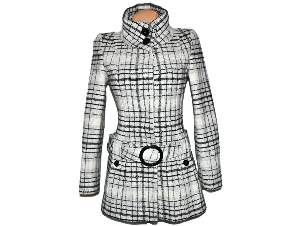Jane Norman, velikost 10/38 - S, šedo-černo-bílý, multikolor, skryté knoflíky, dámský kabát, stojáček, s páskem