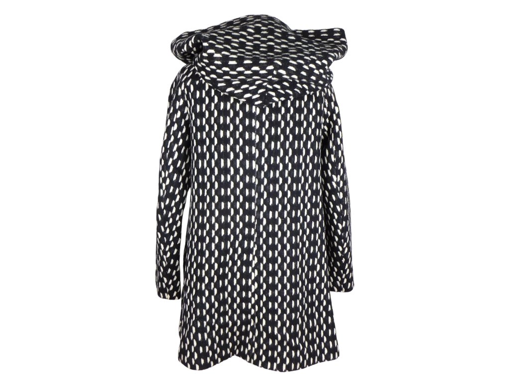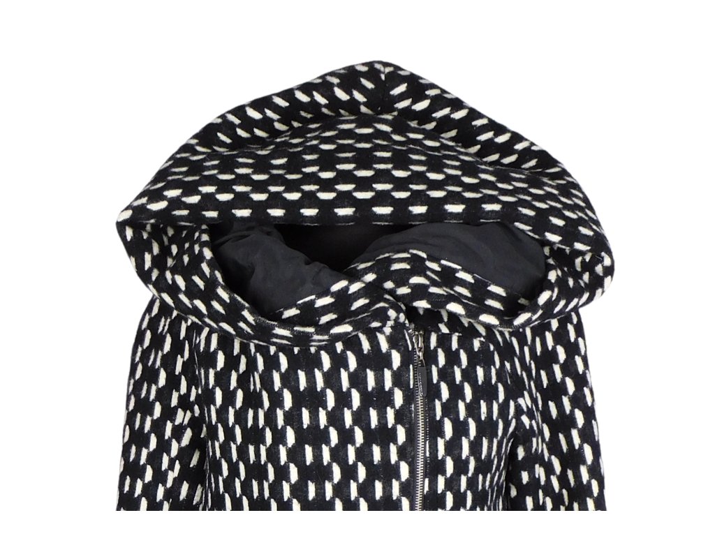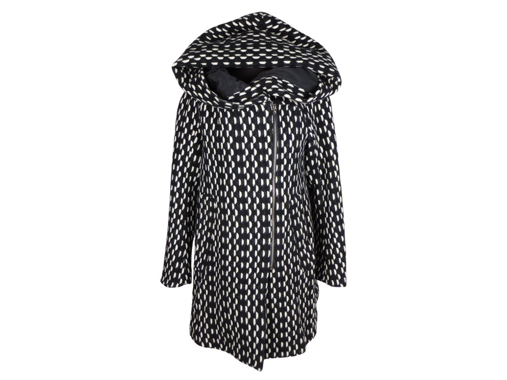 Vlněný (60%) dámský černobílý kabát s kapucí na zip křivák FULLCIRCLE S*