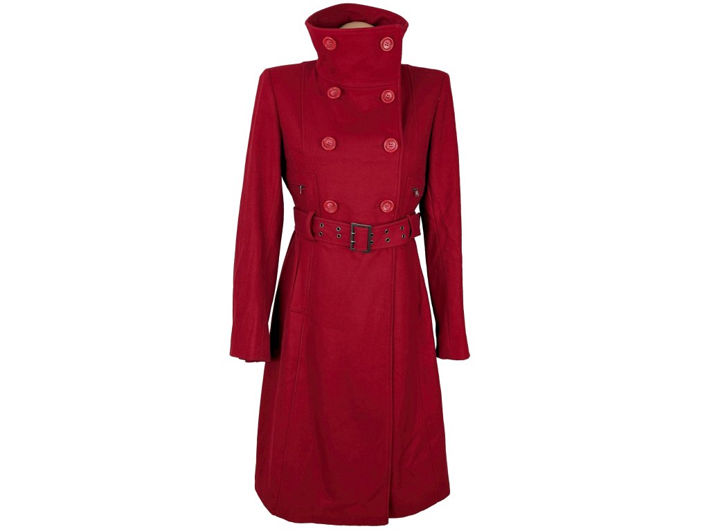 Vlněný (60%) dámský dlouhý červený kabát s páskem COCORO New York M