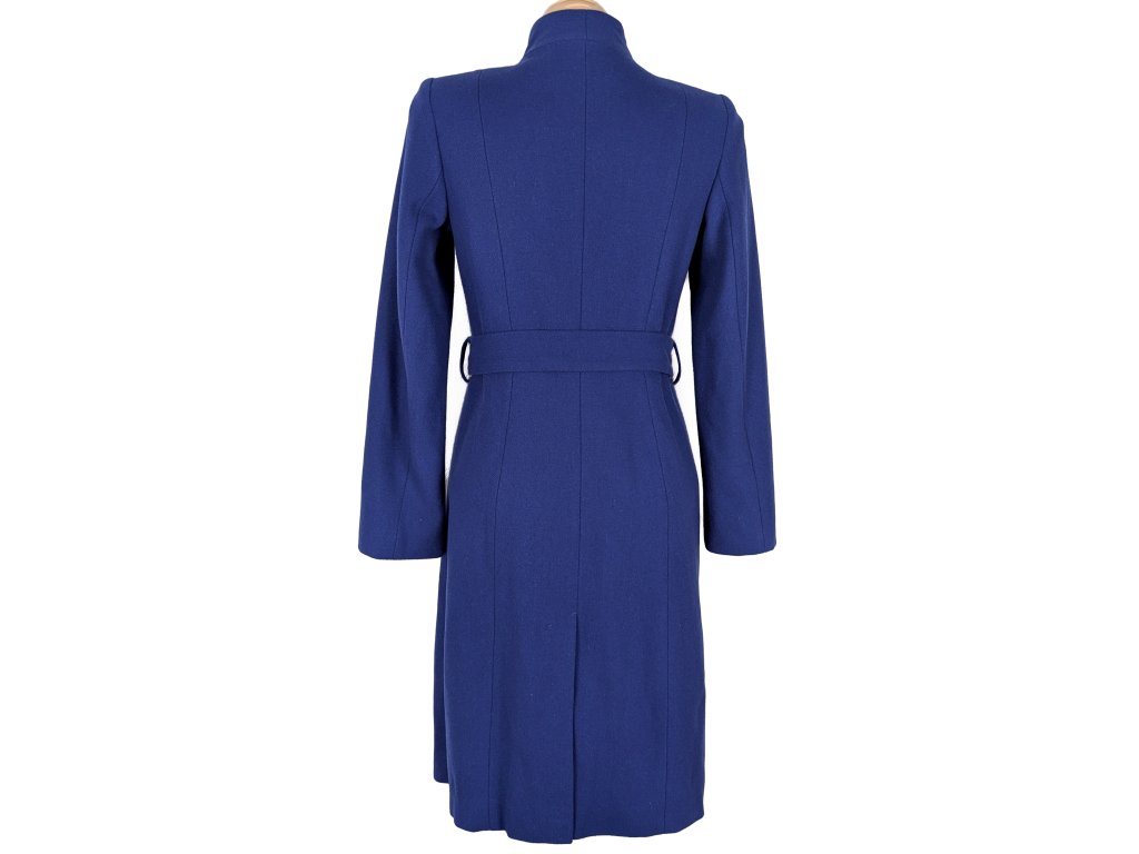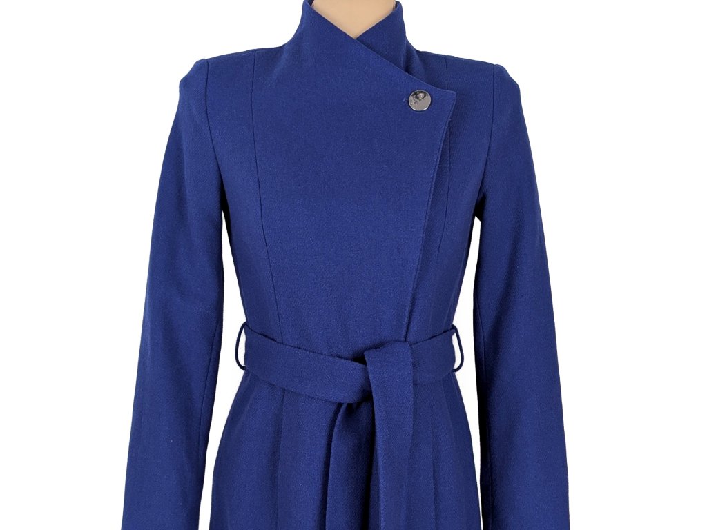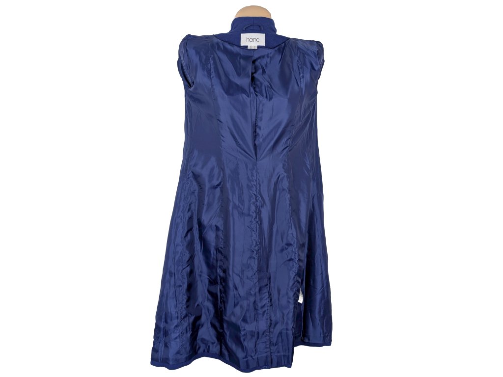 Vlněný (60%) dámský modrý kabát s páskem HEINE 34