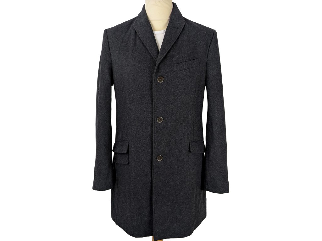 Vlněný (63%) pánský modrý kabát MANGO M/L