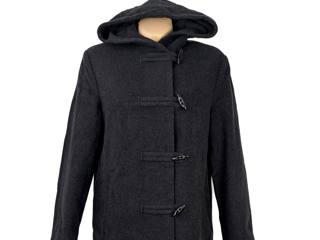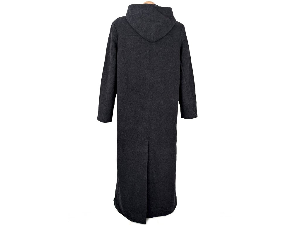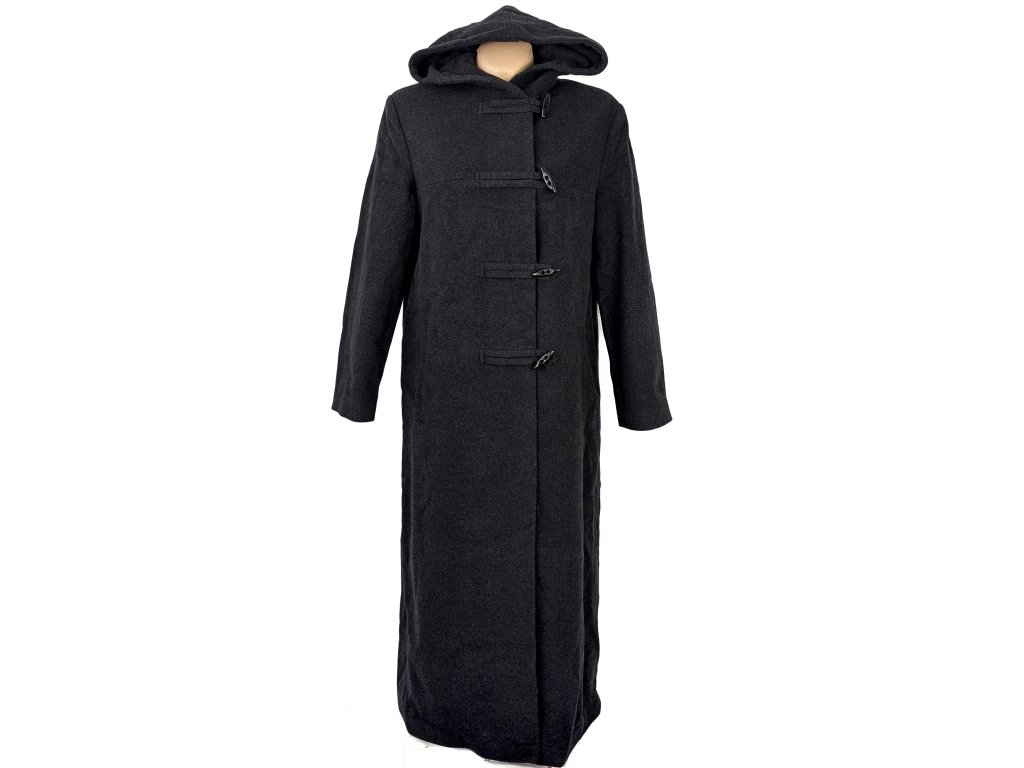 Vlněný (70%) dámský dlouhý šedočerný kabát s kapucí (vlna, kašmír) L