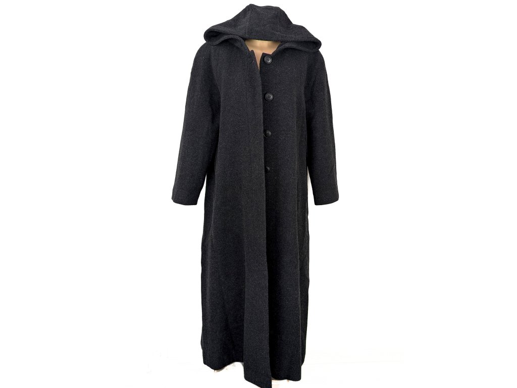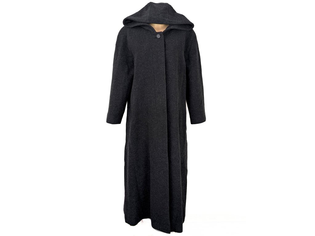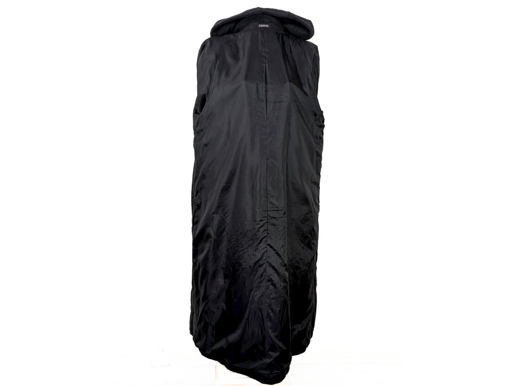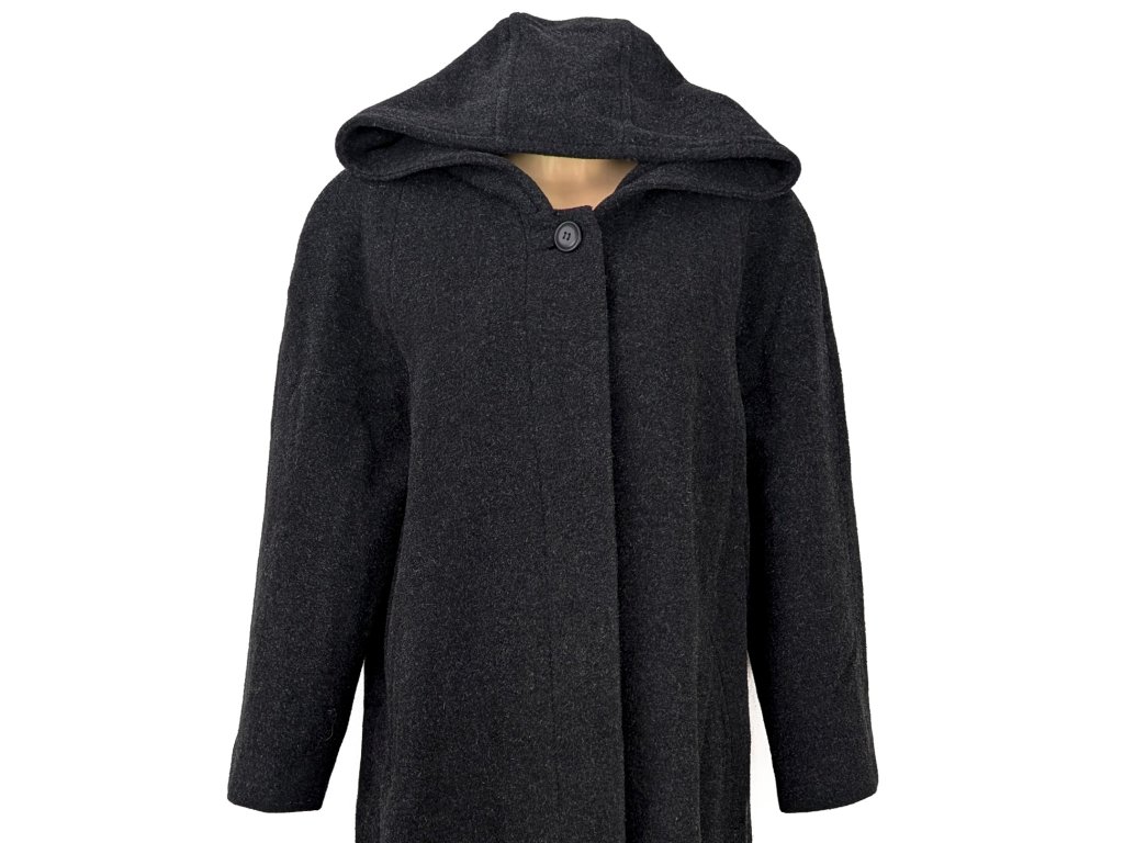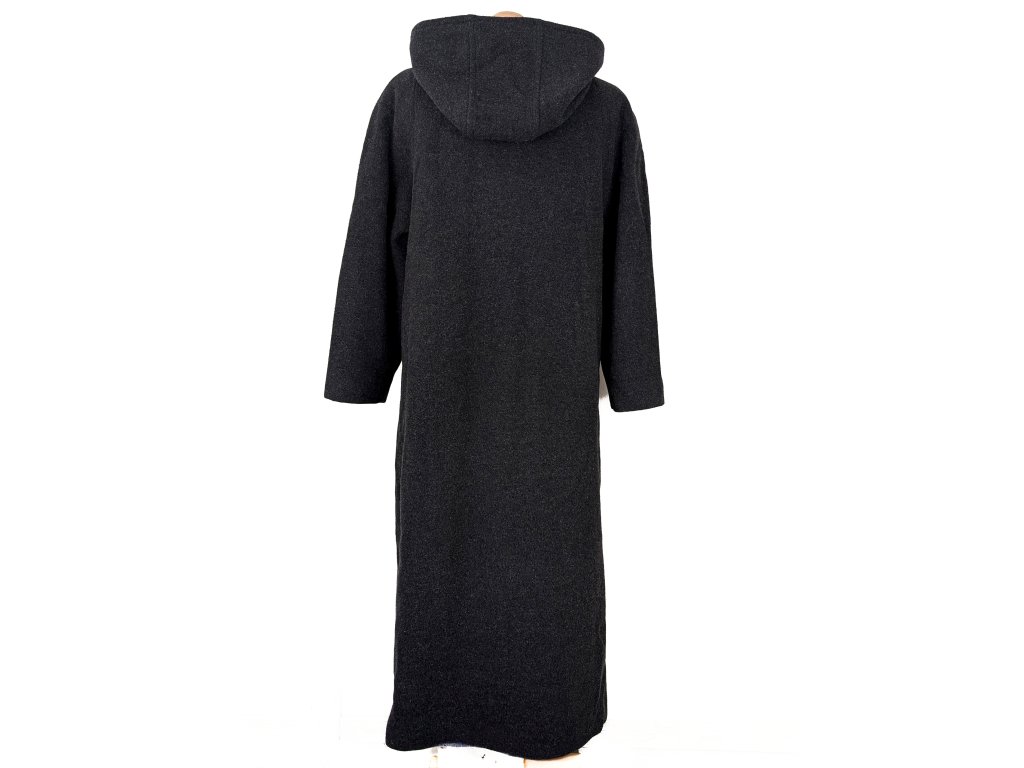 Vlněný (70%) dámský dlouhý šedočerný kabát s kapucí XXL