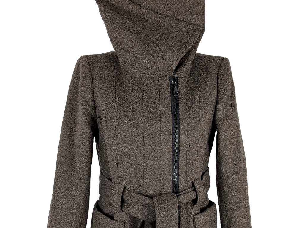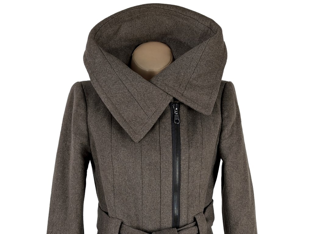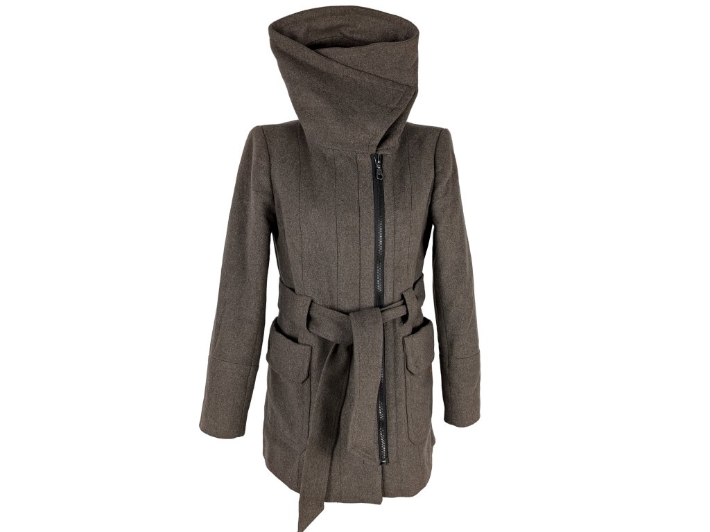 Vlněný (70%) dámský hnědý kabát s páskem ZARA