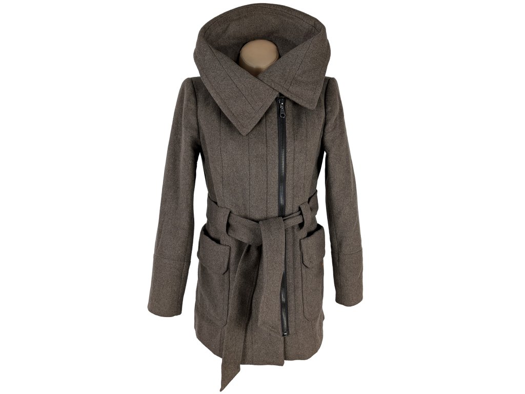 Vlněný (70%) dámský hnědý kabát s páskem ZARA M/L