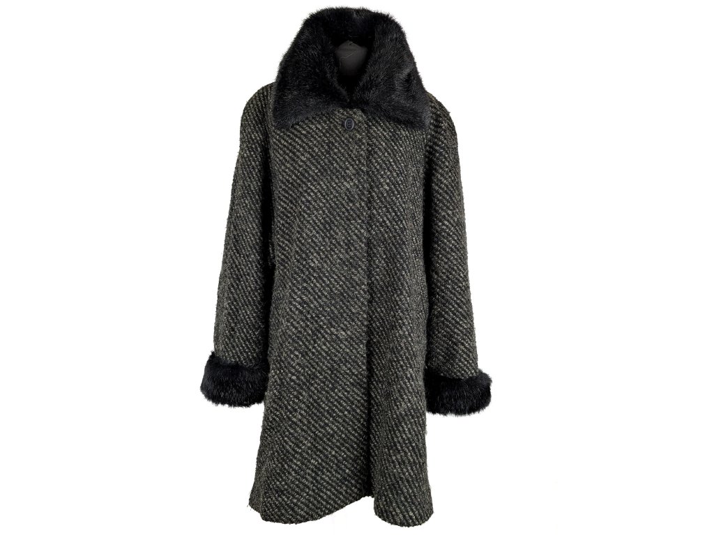 Vlněný (70%) dámský melírovaný kabát 52