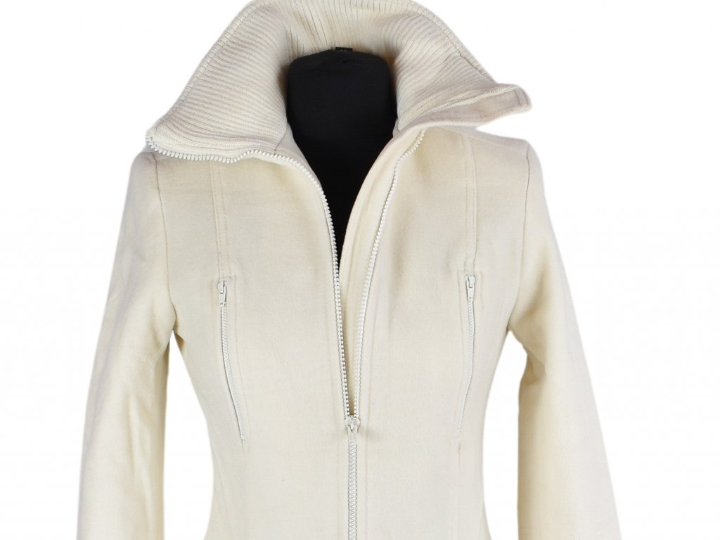 Vlněný (70%) dámský smetanový kabát na zip H&M 34