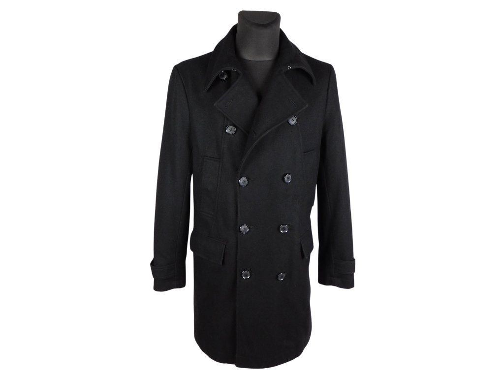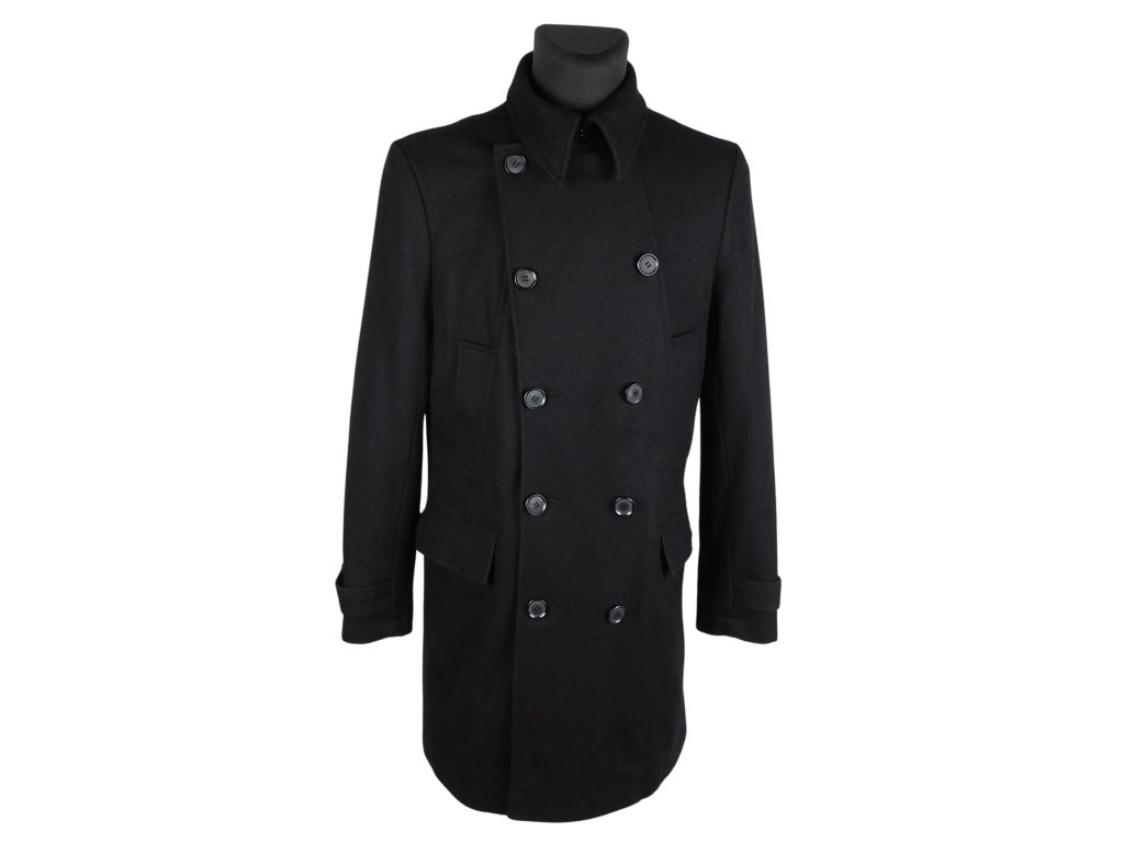 Vlněný (71%) pánský černý kabát TOPMAN M*