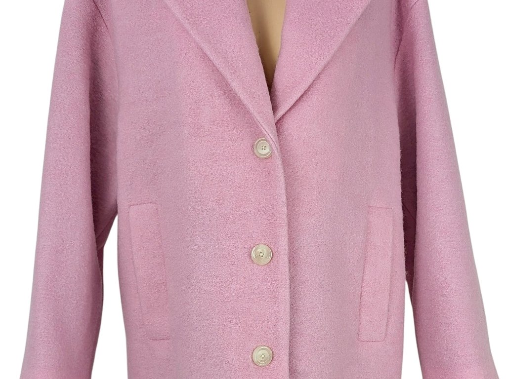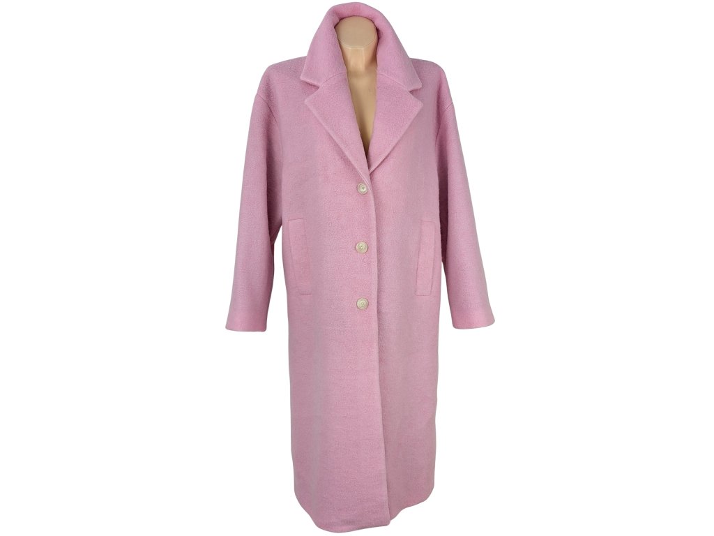 Vlněný (72%) dámský dlouhý růžový oversize kabát Mango L