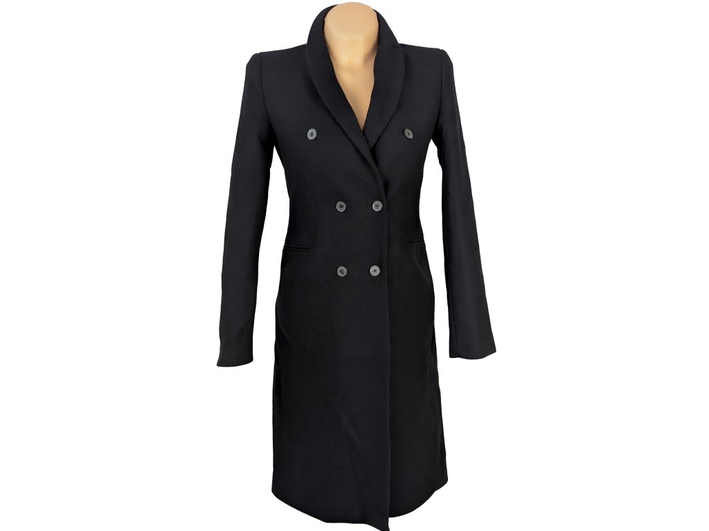 Vlněný (75%) dámský černý kabát ZARA XS/S
