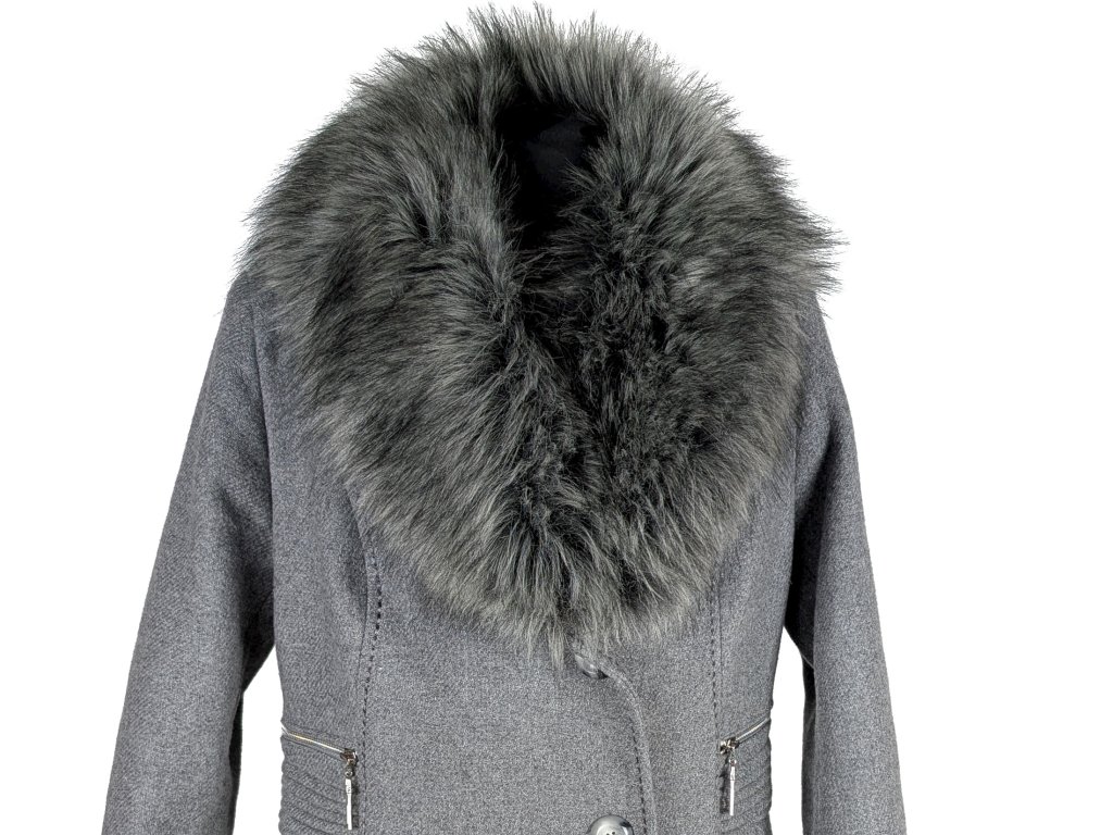Vlněný (80%) dámský šedý zimní kabát Adrianno Damianii M