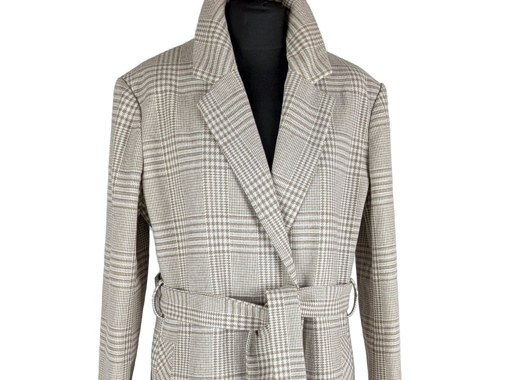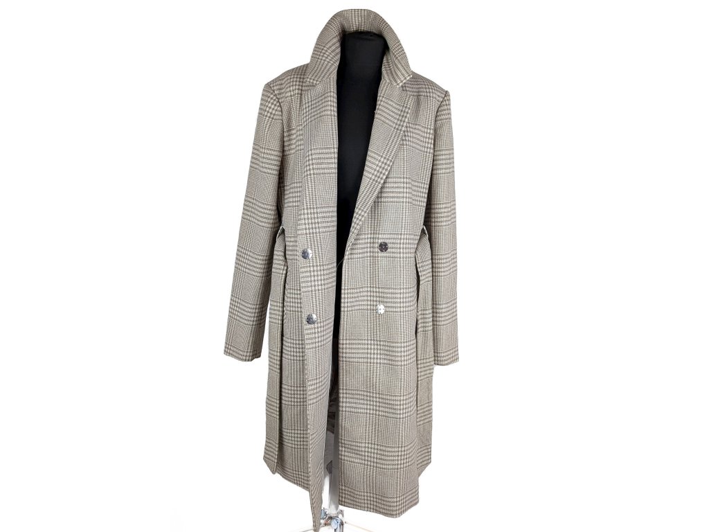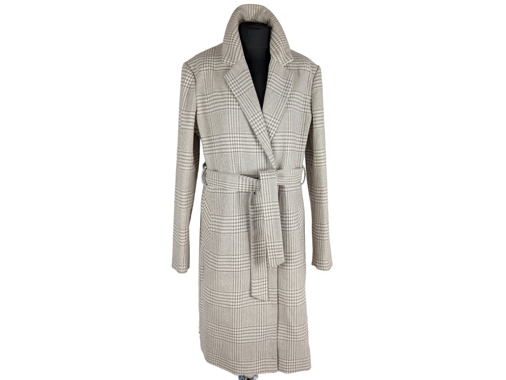 Vlněný dámský béžový károvaný kabát s páskem Orsay 42