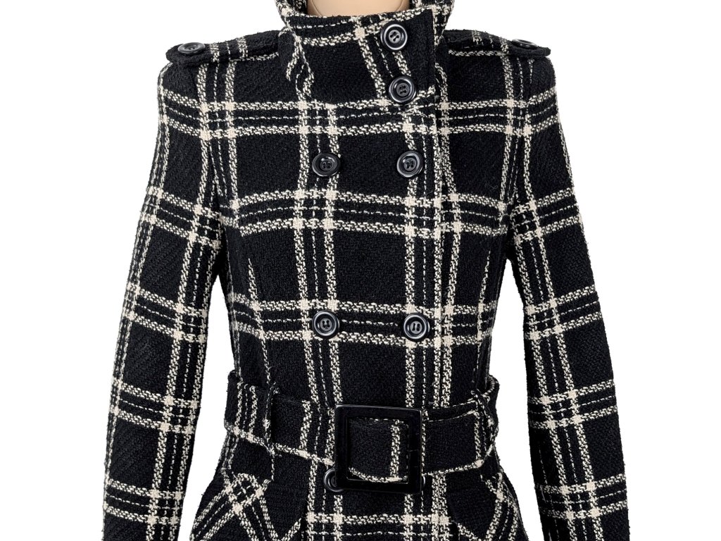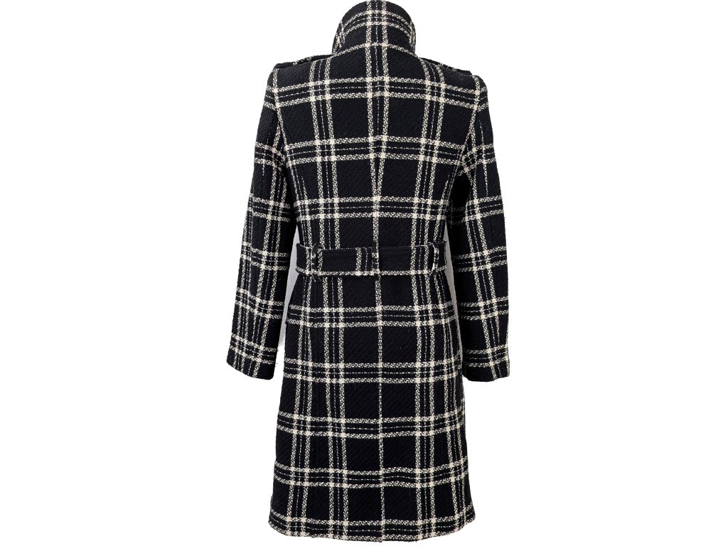 Vlněný dámský černobílý kabát s páskem Miss H. 38