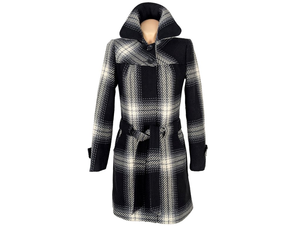 Vlněný dámský černobílý kabát s páskem PROMOD M