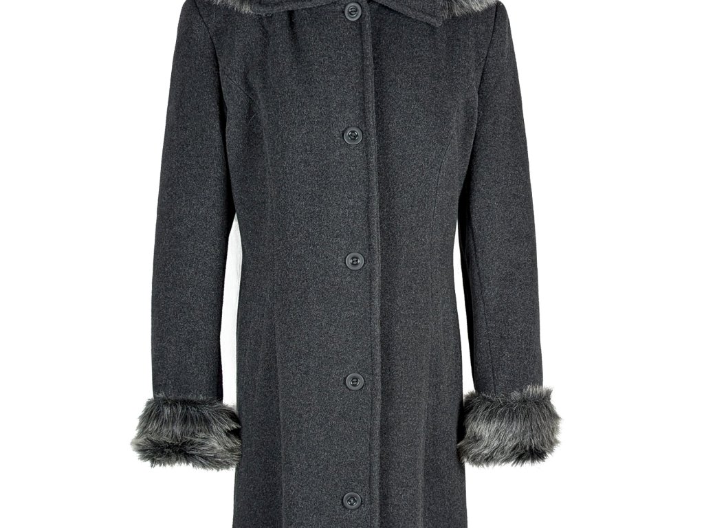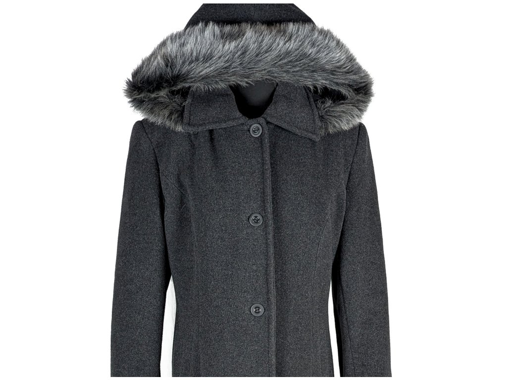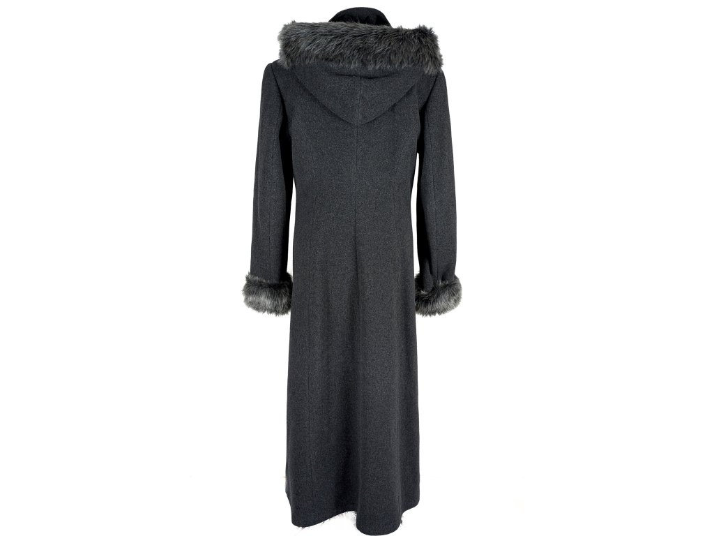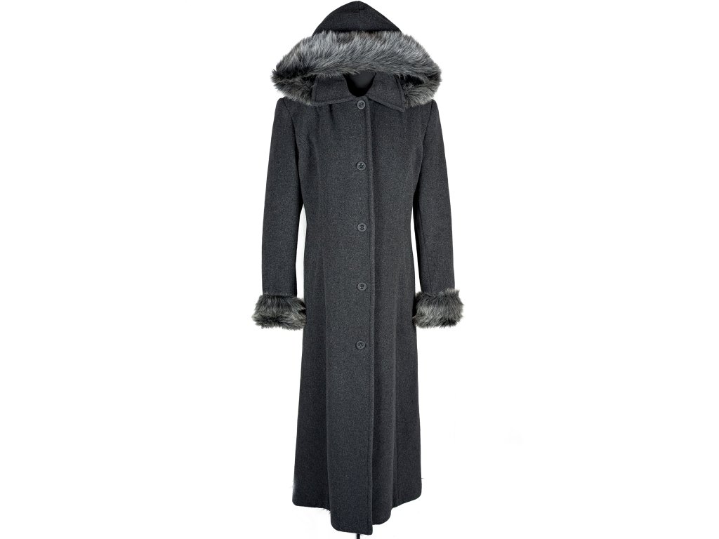 Vlněný dámský dlouhý šedý zimní kabát s kapucí Catherine L