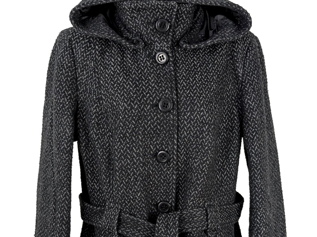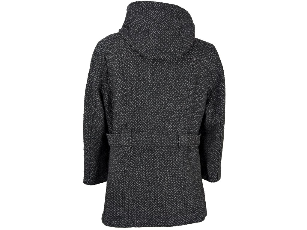 Vlněný dámský šedočerný kabát s páskem a kapucí Canda 20/46