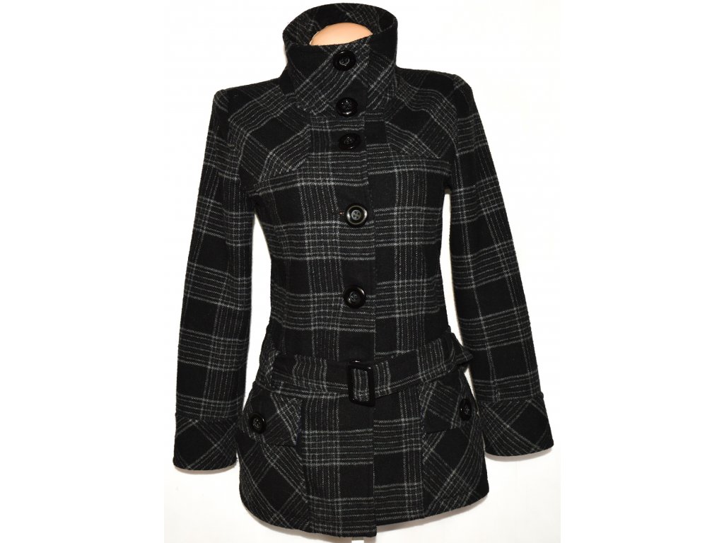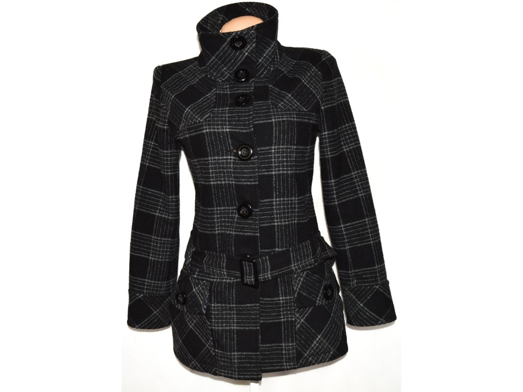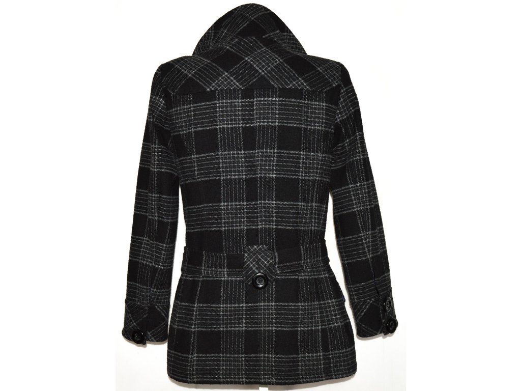 Vlněný dámský šedočerný kabát s páskem NEW LOOK 14/42