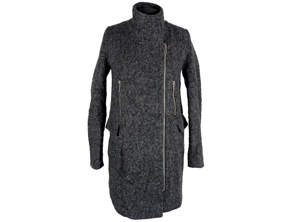 Vlněný dámský šedý kabát - křivák MOHITO 34